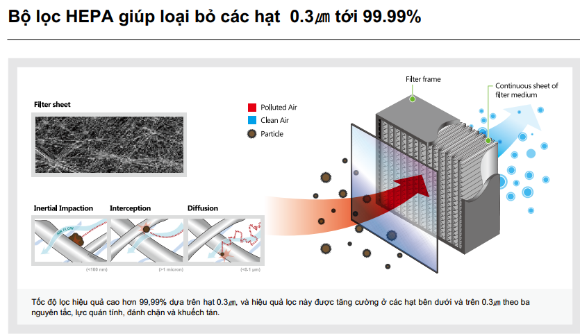 Hiệu suất lọc Bộ lọc HEPA > 99.995% ở 0.3㎛ |