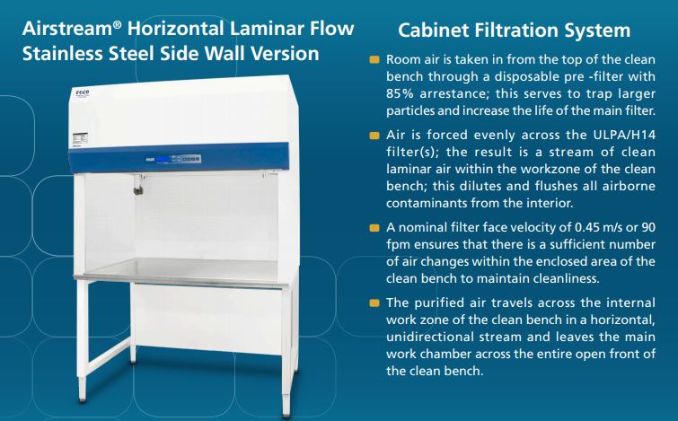 Tủ thao tác vô trùng khí thổi ngang Esco có hai series là LHG- và LHS-
